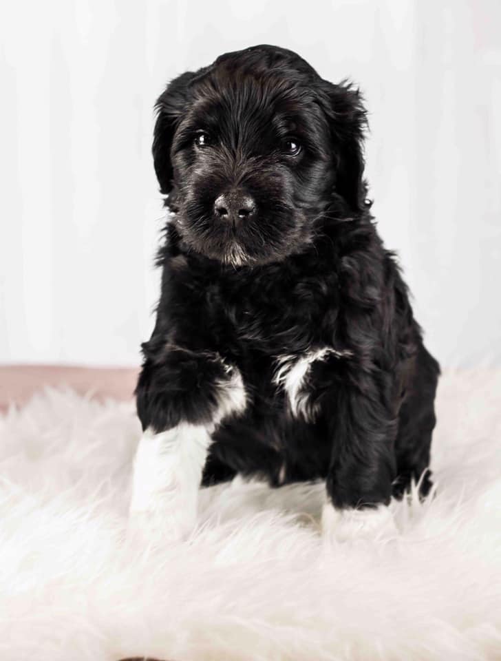 Barva: černá s bílými znaky (wavy)