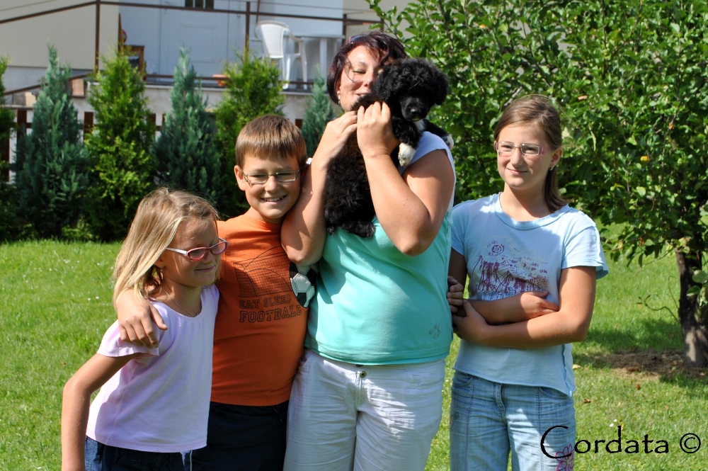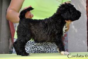 Velmi akční štěňátko. Když se ji něco nelíbí dokáže to dát najevo. Ráda poškouší své sourozence ke hře a mamku Amálku najde při krmení jako první. Nebojí se ťapkat za Amálkou po celém pokoji. Naprosto vyrovnané štěňátko. Novou rodinu už má.