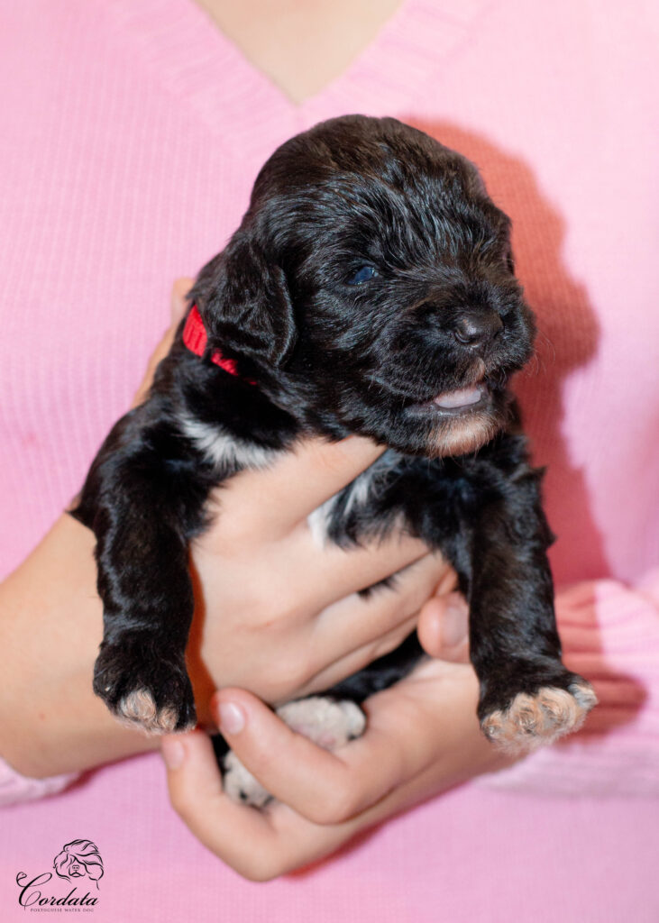 Barva: černá s bílými znaky (wavy)