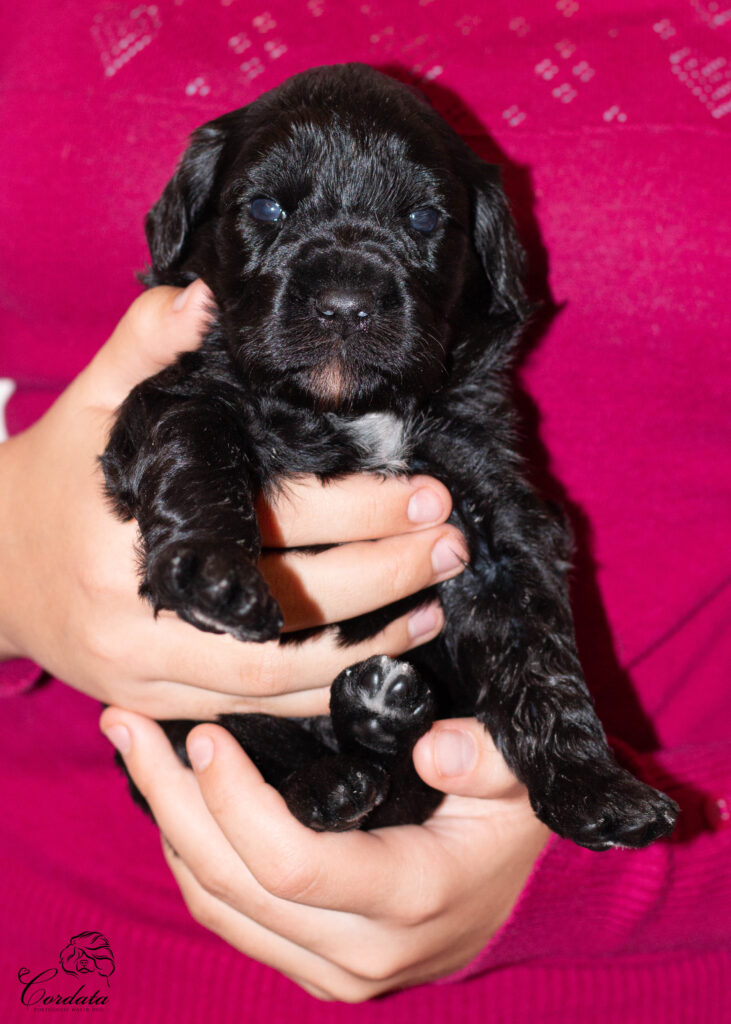 Barva: černá s bílými znaky (wavy)