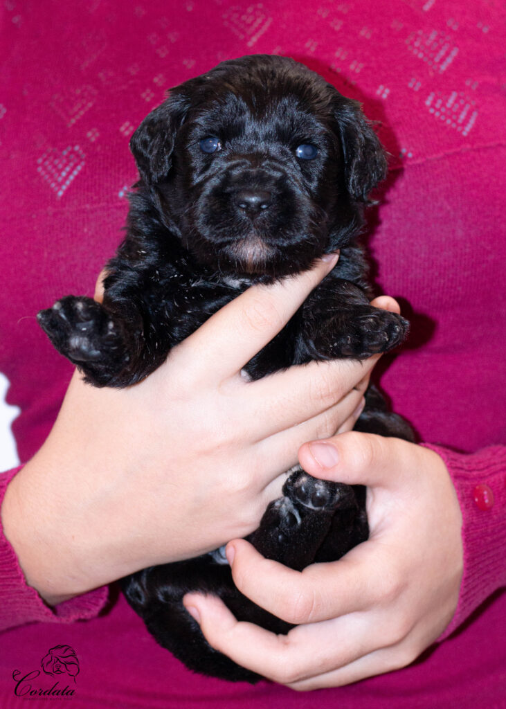 Barva: černá s bílými znaky (wavy)