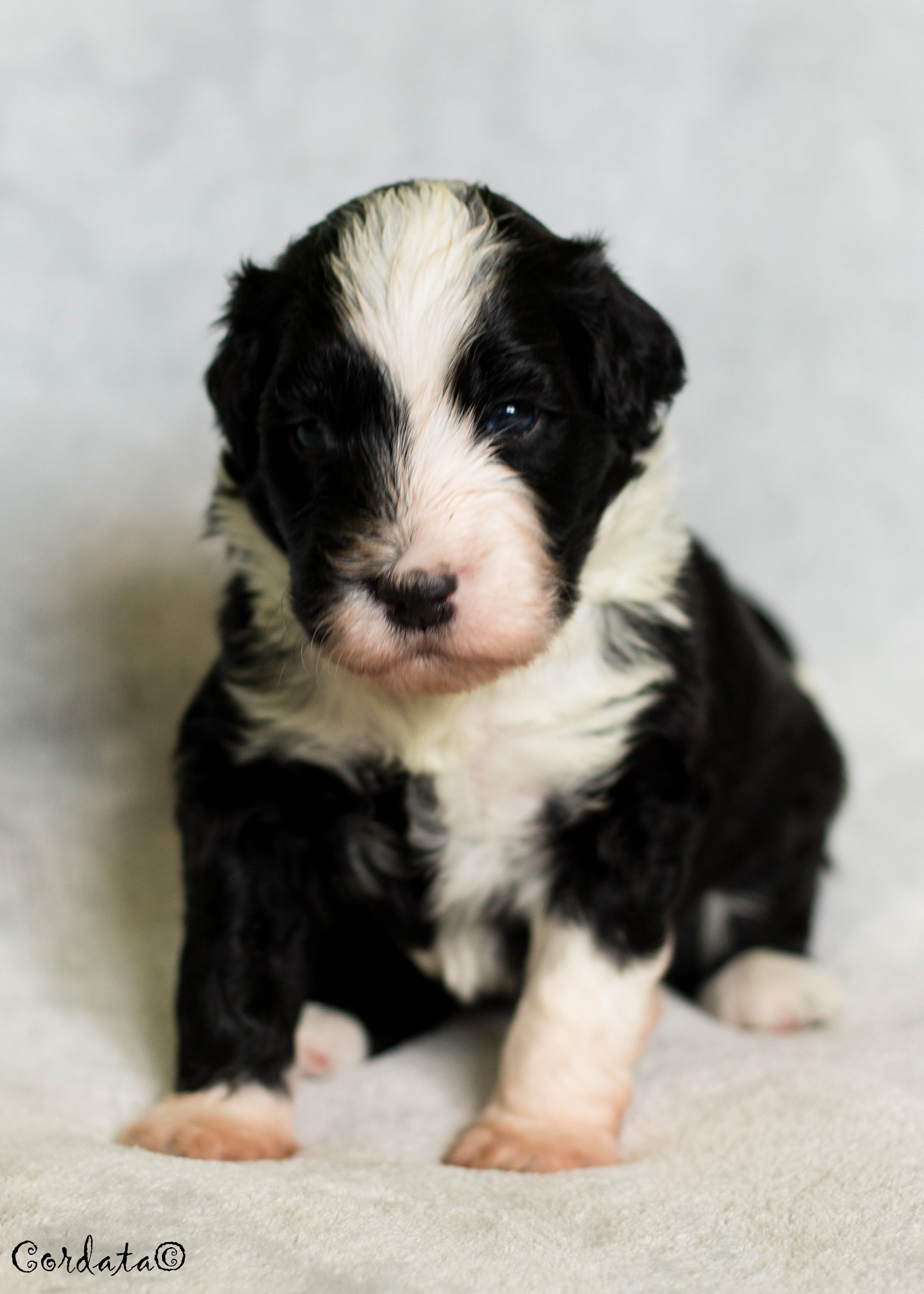 Barva: černá s bílými znaky (wavy)