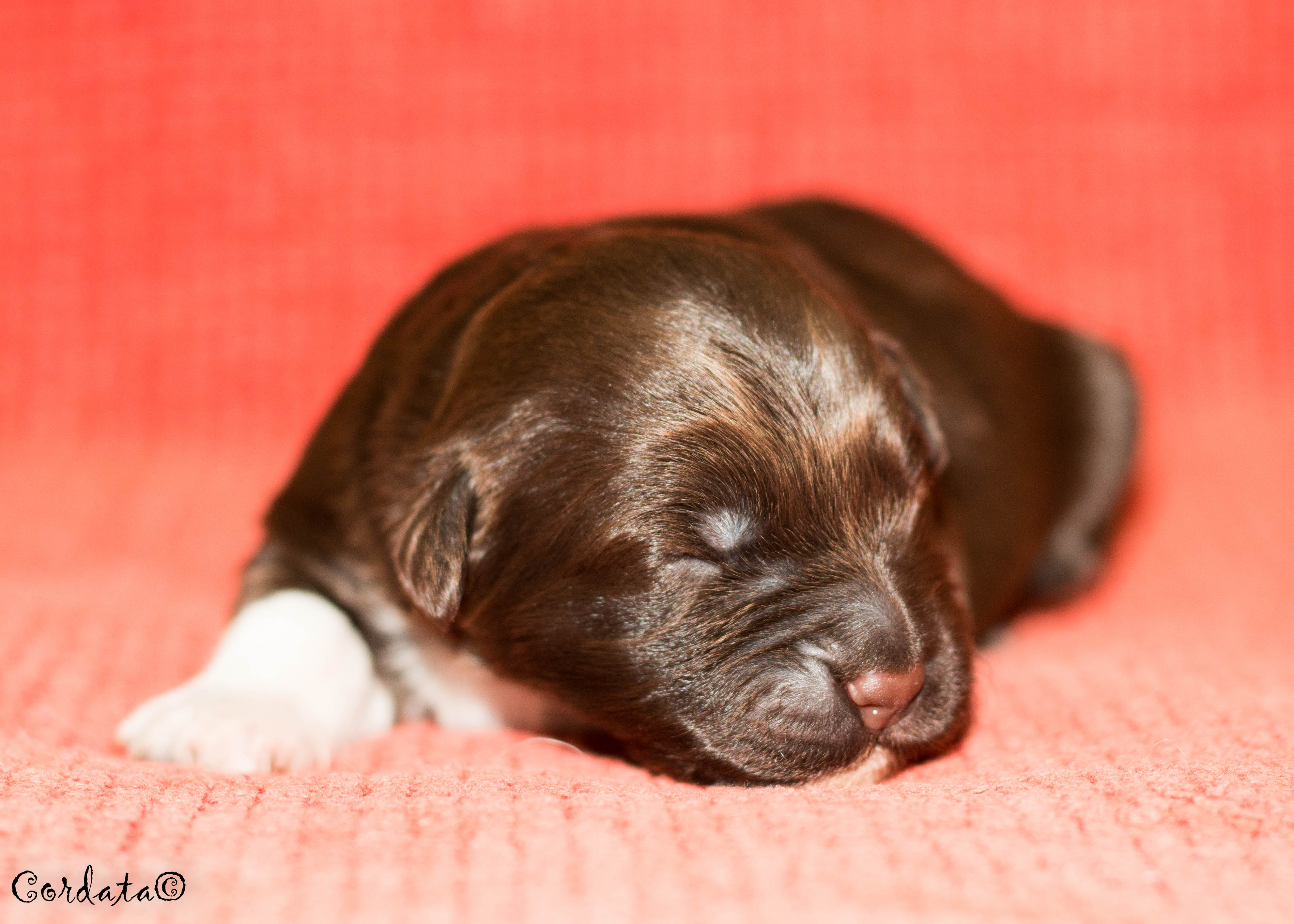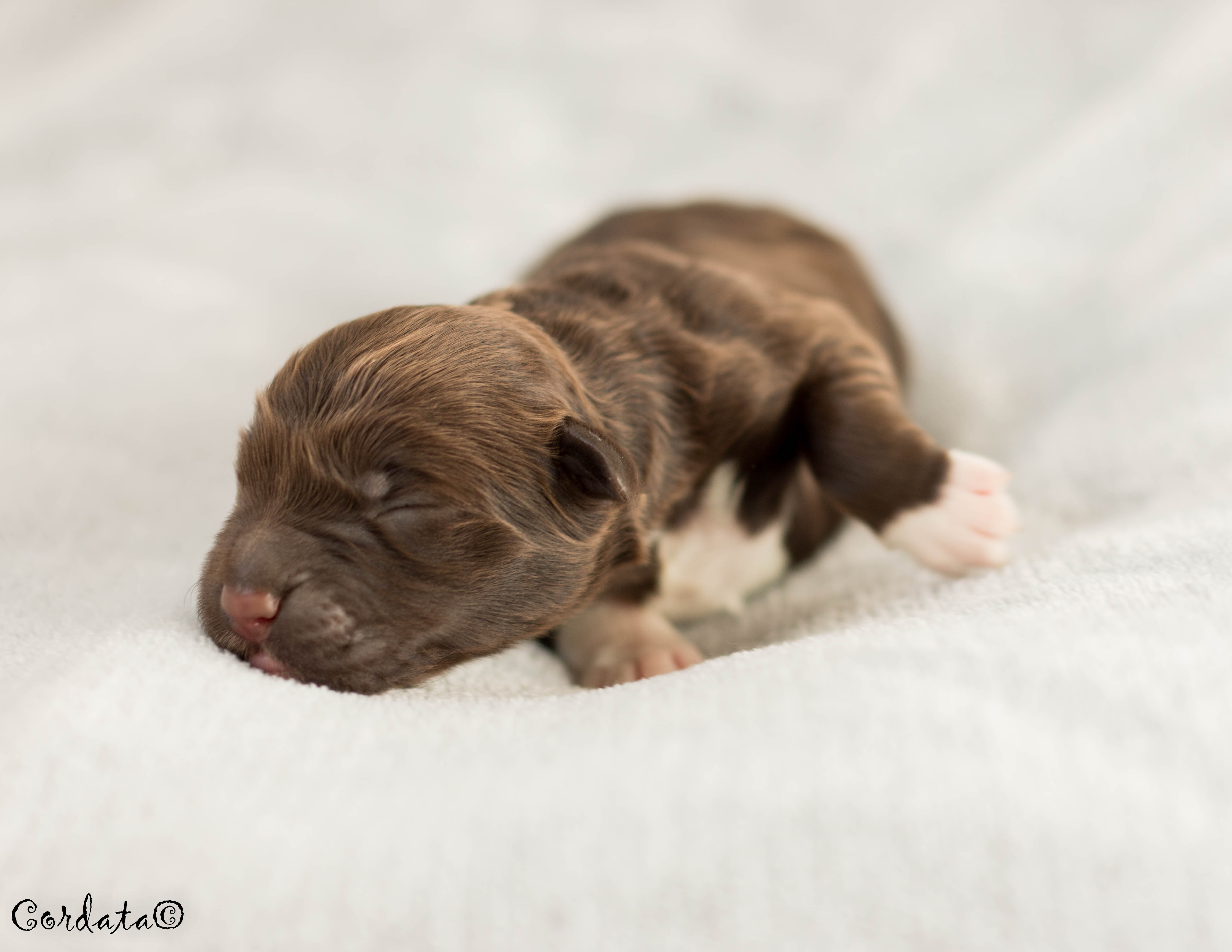 Barva: hnědá s bílými znaky (wavy)