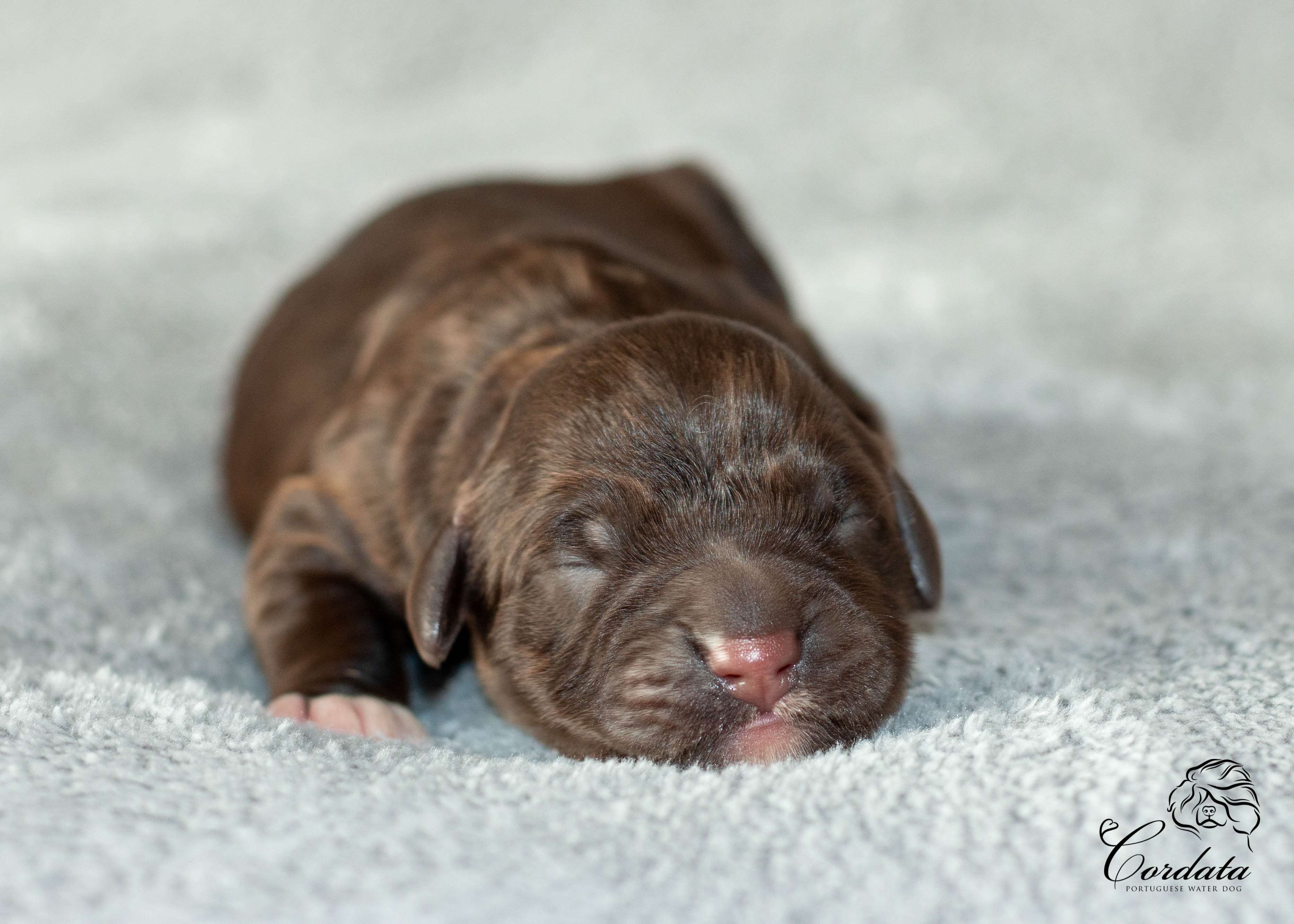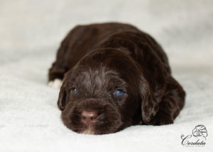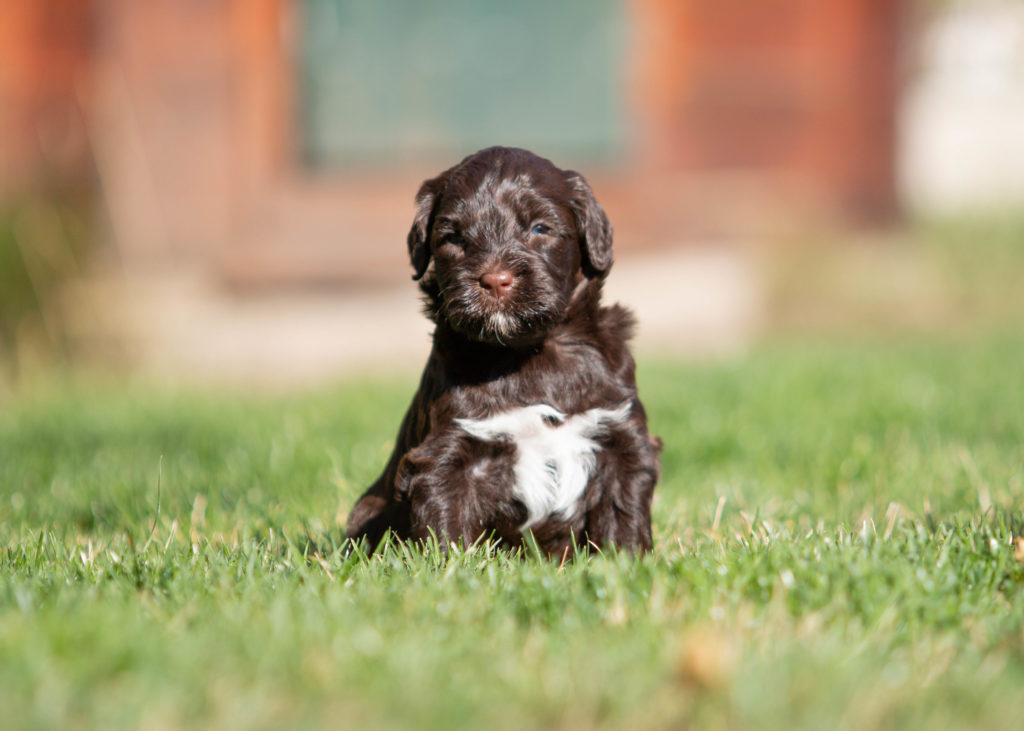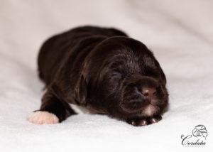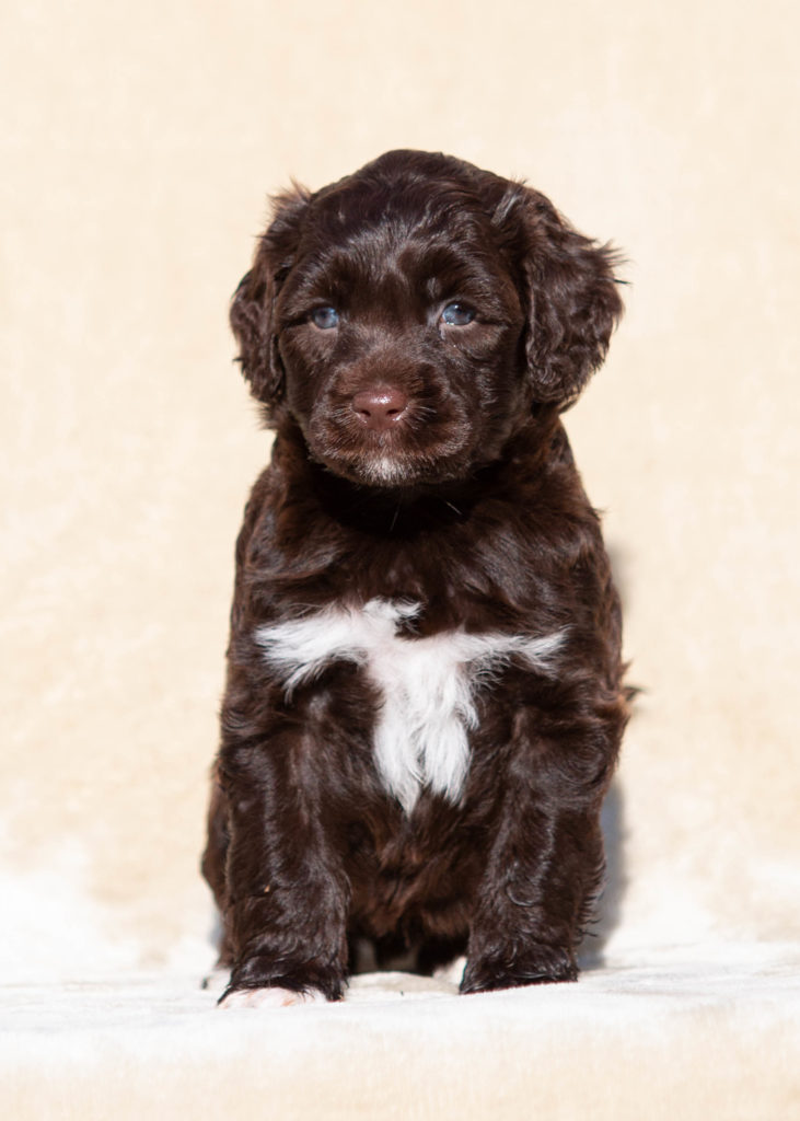 Barva: hnědá s bílými znaky (wavy)