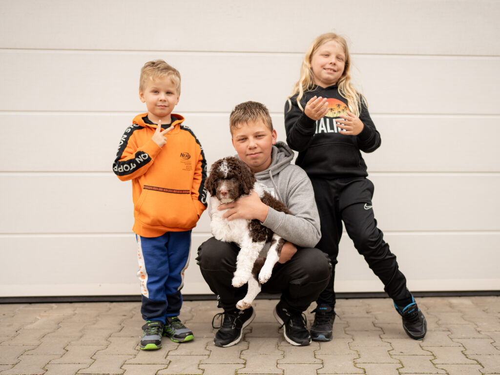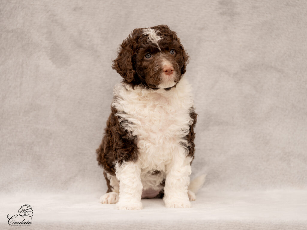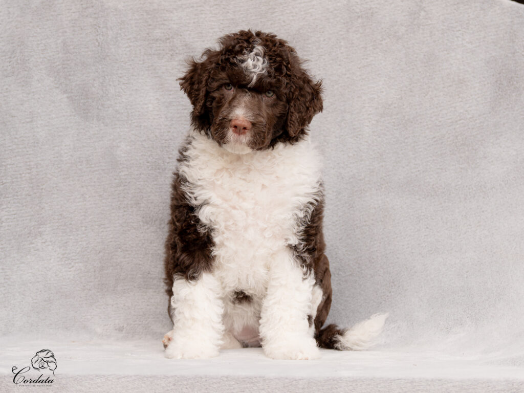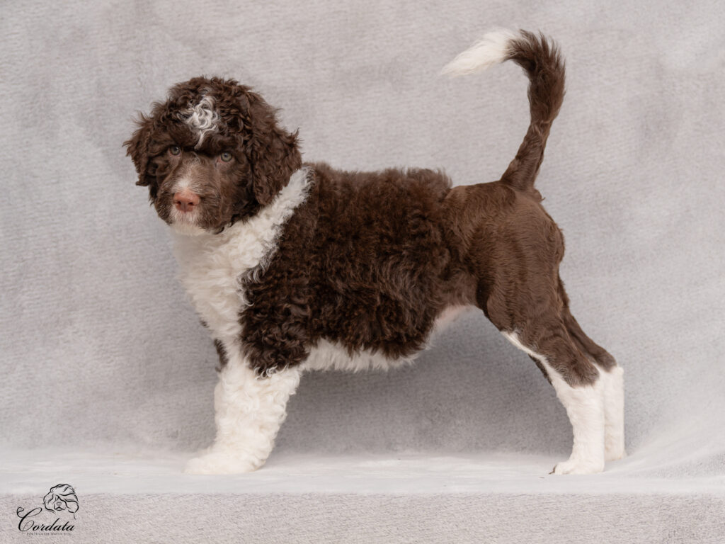 Barva: hnědá, bílé znaky (curly)