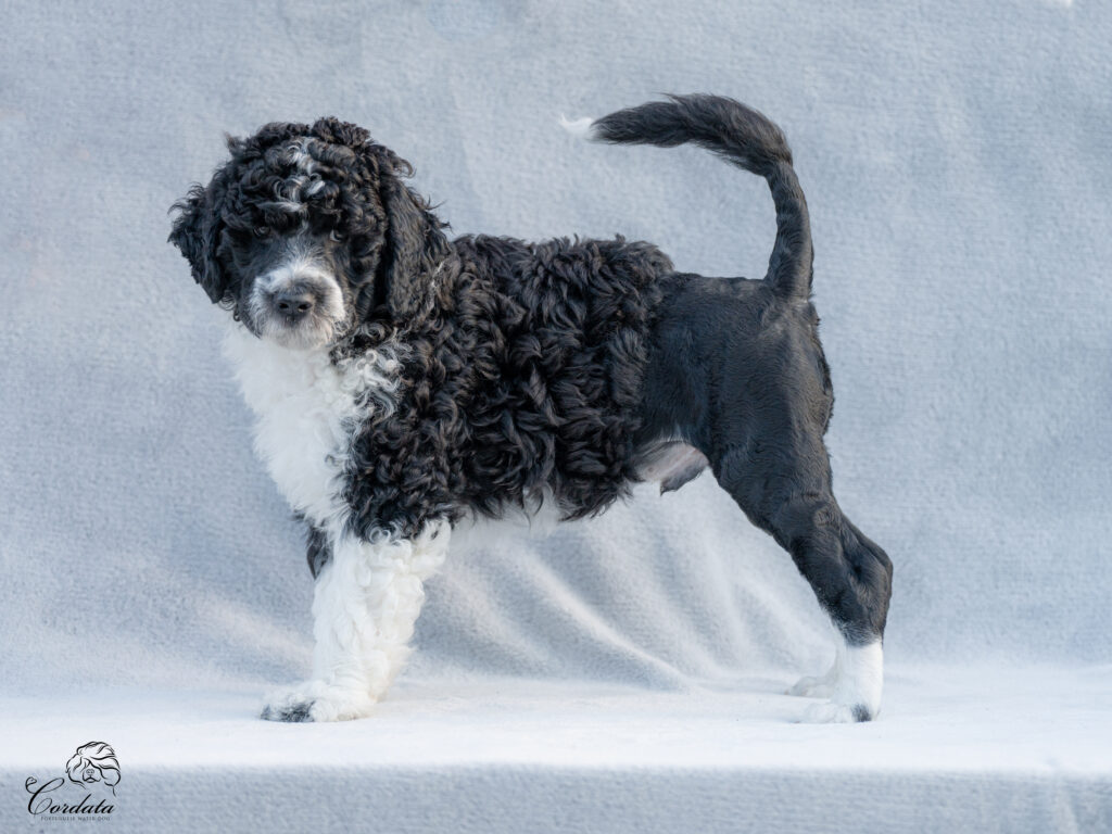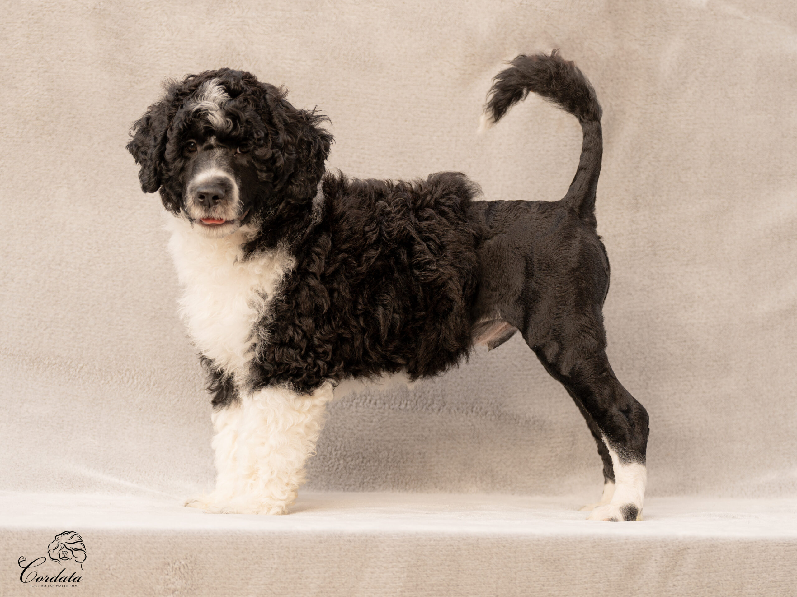 Barva: černá, bílé znaky (curly)